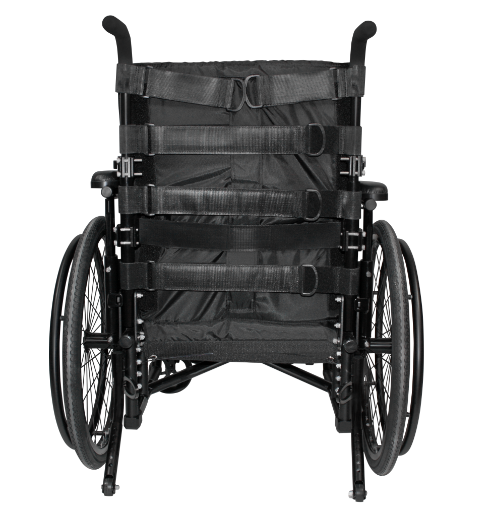Le dossier AxisMD épouse la forme du dos de l’usager et répond à différentes pathologies, grâce à sa conception et ses ajustements simples et efficaces. Les courroies de l’AxisMD sont munies de grandes bandes de velcros qui permettent d’ajuster la tension du dossier facilement.